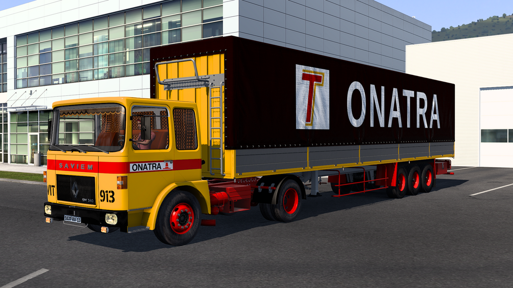 skin pack ONATRA pour le SAVIEM SM + semi remorque bâchée + remorque tandem dolly + citerne des mod de truck access simulator